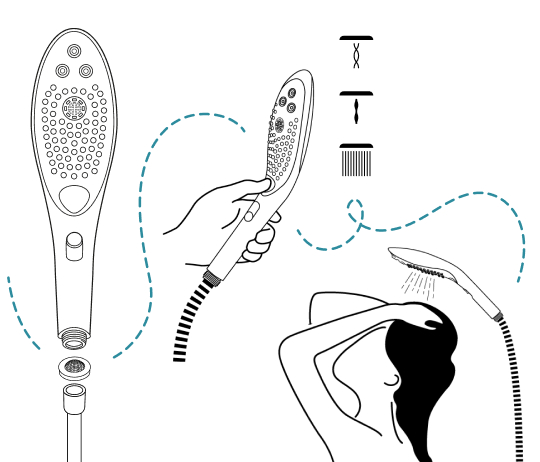 Ce pommeau de douche se fixe en quelques secondes à n’importe quel flexible standard. Aucun outil nécessaire, aucun accessoire en plus. Il suffit de le visser comme un pommeau classique, et le tour est joué. Vous n’avez pas besoin de modifier votre installation existante.