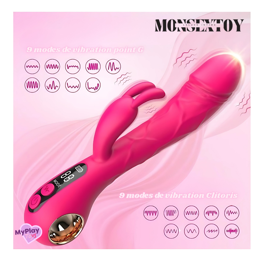 Ce vibromasseur innovant se distingue par sa conception ergonomique et ses dimensions parfaitement adaptées au confort intime. Avec une longueur totale de 22,5 cm, dont 14 cm insérables, et un diamètre variant de 2,7 à 3,7 cm, il offre une pénétration progressive et agréable. Sa forme légèrement courbée est spécialement pensée pour atteindre le point G avec précision, tandis que son stimulateur externe en forme d’oreilles de lapin cible le clitoris. Grâce à ce design 2 en 1, ce sextoy offre une double stimulation complète et harmonieuse.